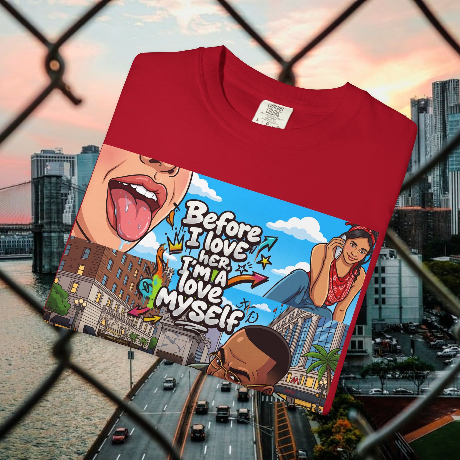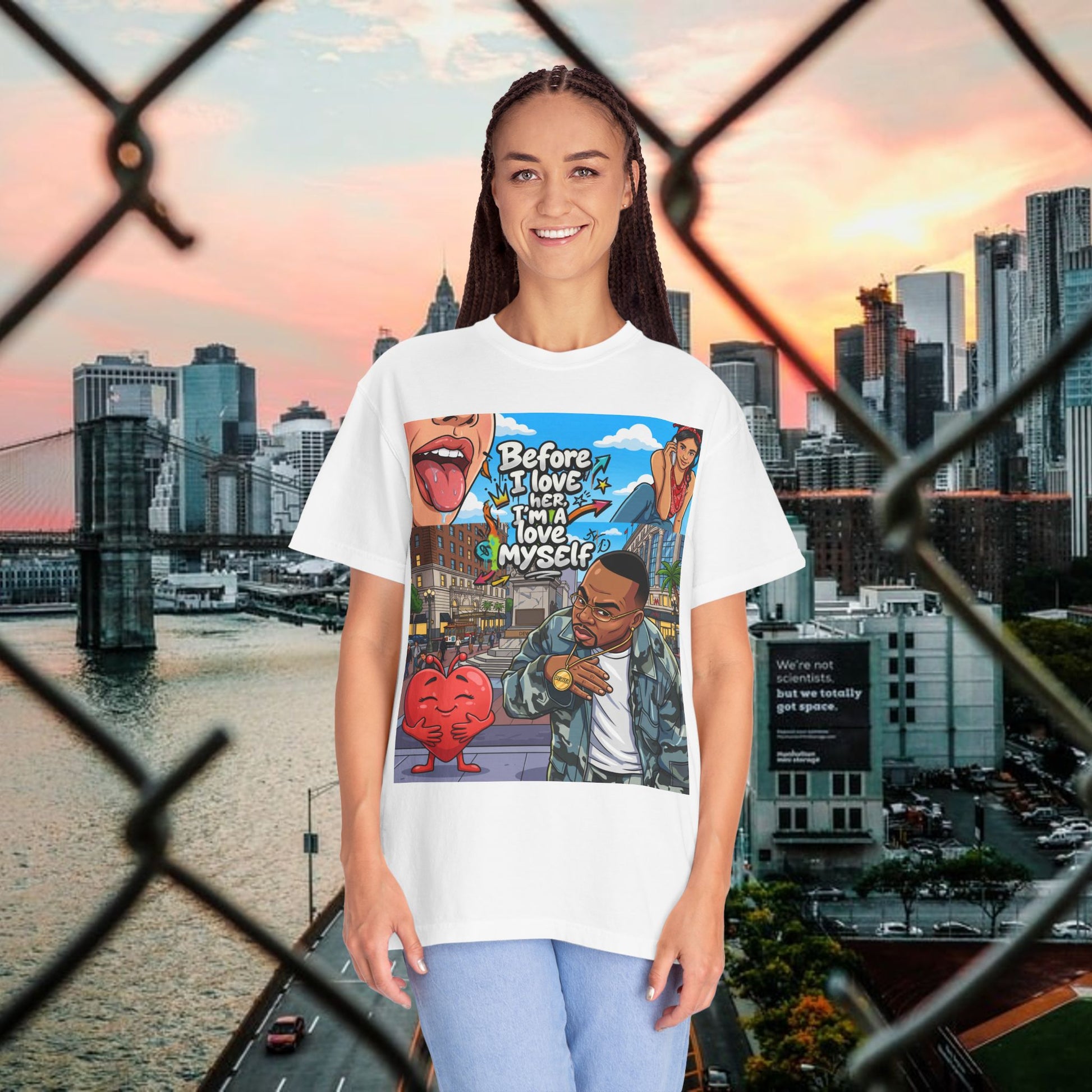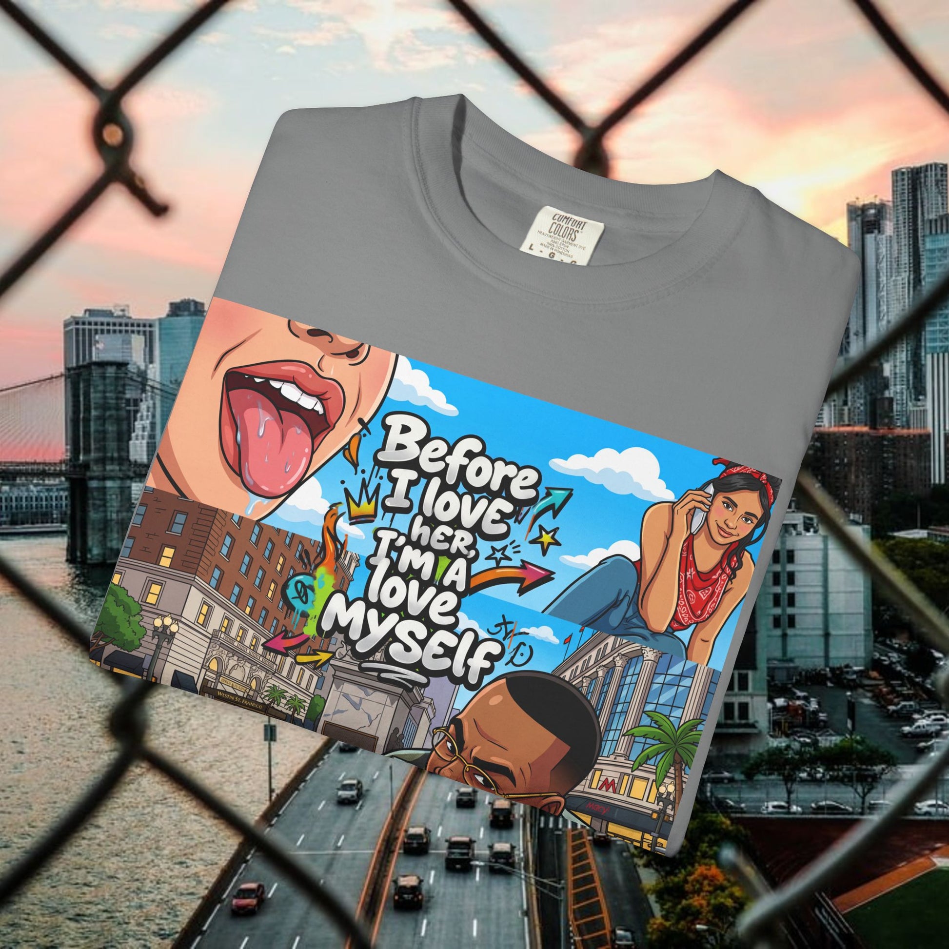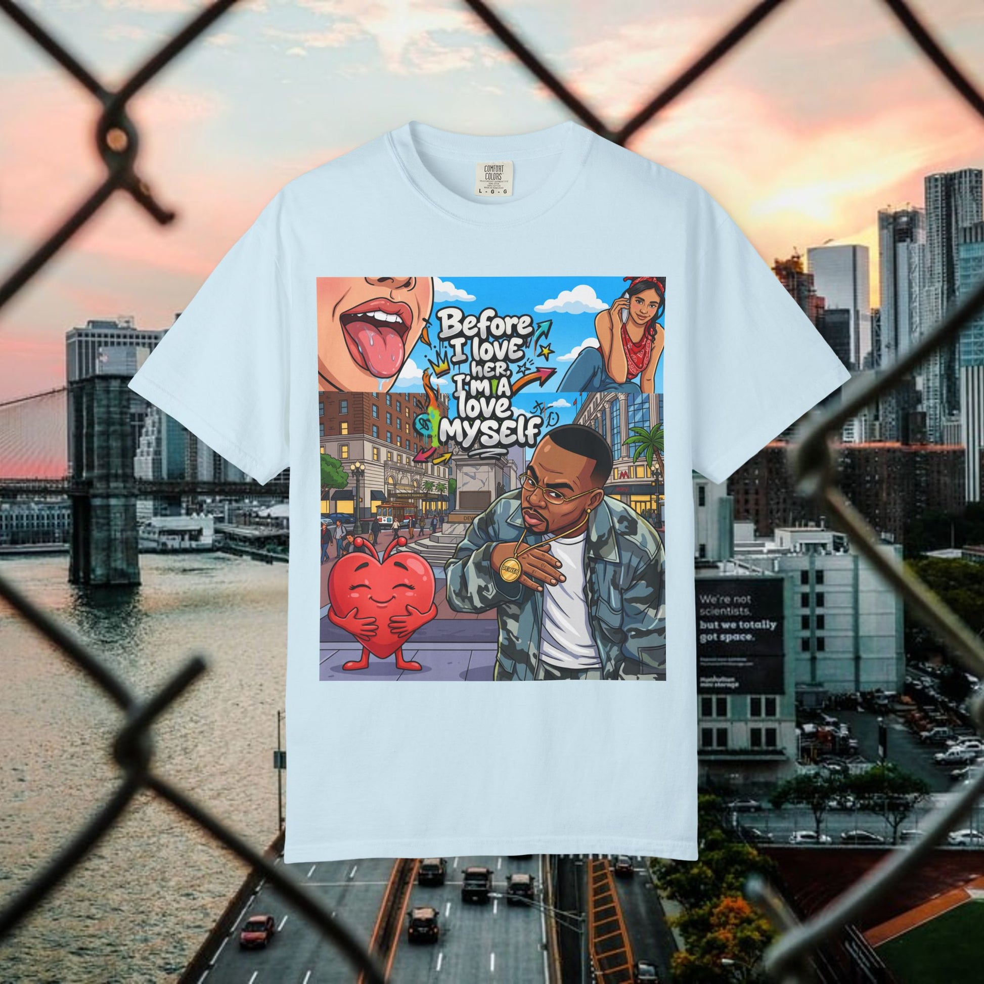Description: This relaxed garment-dyed tee wears like an old favorite from the moment you pull it on. The simple “Love yourself” graphic sits soft against washed colorways, a quiet reminder to slow down and be gentle with yourself. It’s breathable and slightly weighty—enough presence to feel cozy without weighing you down—so it works for slow mornings, neighborhood walks, or layered over a sundress at dusk. The relaxed fit and range of colors let your mood show through: muted sage for low-key days, sun-faded coral for brighter ones. Durable stitching and a soft hand mean it keeps getting better with every wash, becoming more lived-in and personal over time.