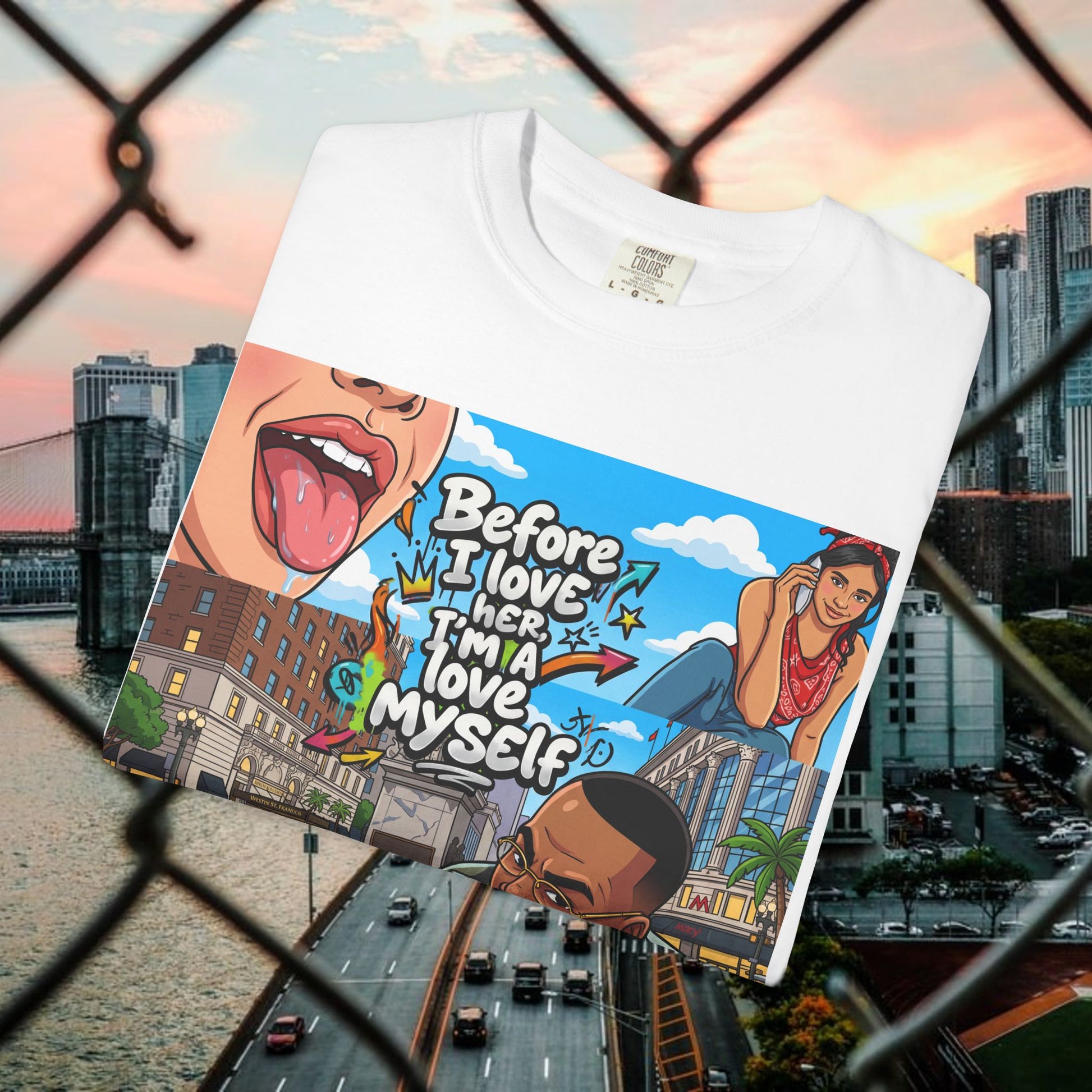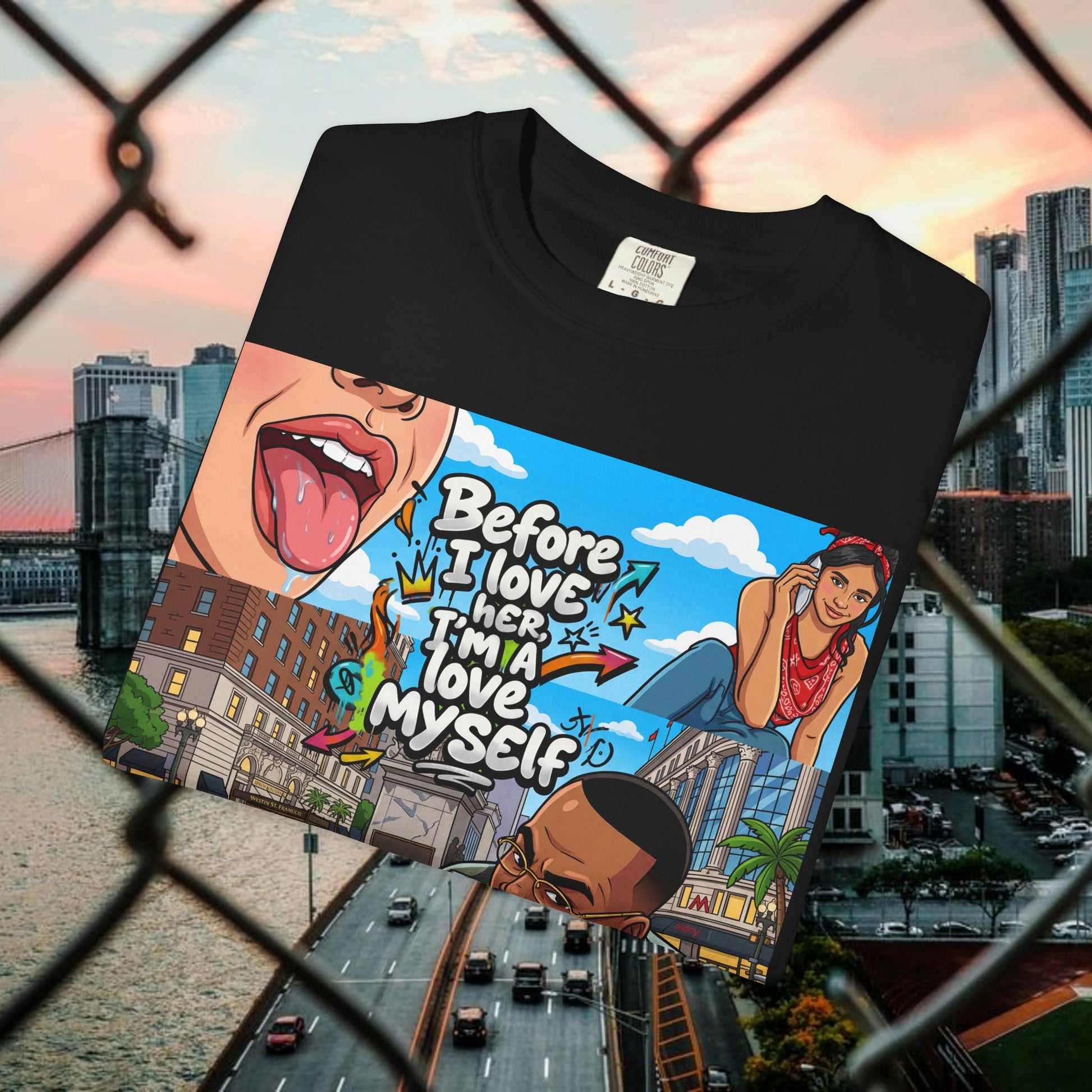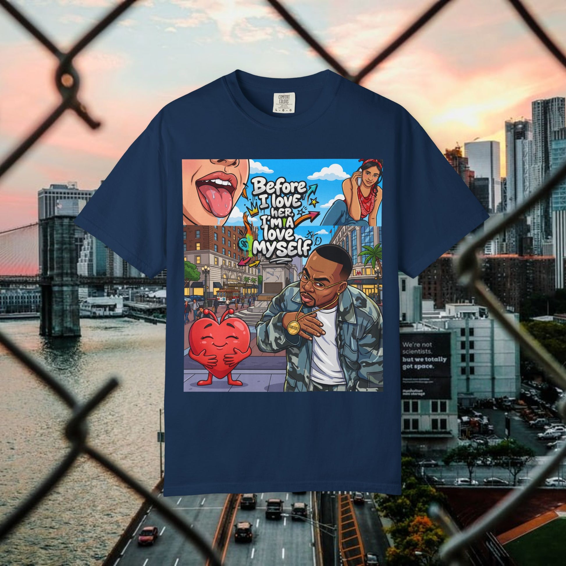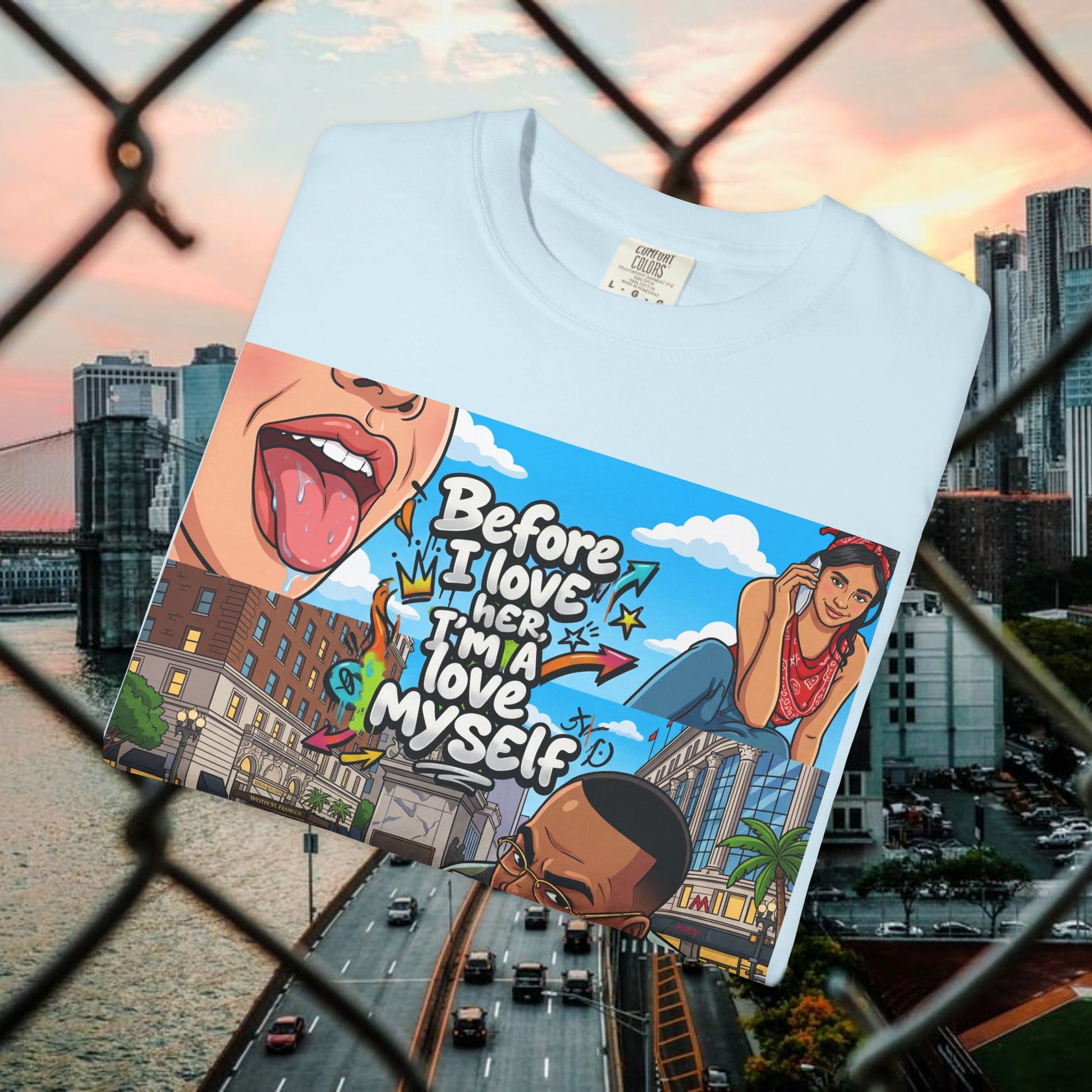 Description: This relaxed garment-dyed tee wears like an old favorite from the moment you pull it on. The simple “Love yourself” graphic sits soft against washed colorways, a quiet reminder to slow down and be gentle with yourself. It’s breathable and slightly weighty—enough presence to feel cozy without weighing you down—so it works for slow mornings, neighborhood walks, or layered over a sundress at dusk. The relaxed fit and range of colors let your mood show through: muted sage for low-key days, sun-faded coral for brighter ones. Durable stitching and a soft hand mean it keeps getting better with every wash, becoming more lived-in and personal over time.
