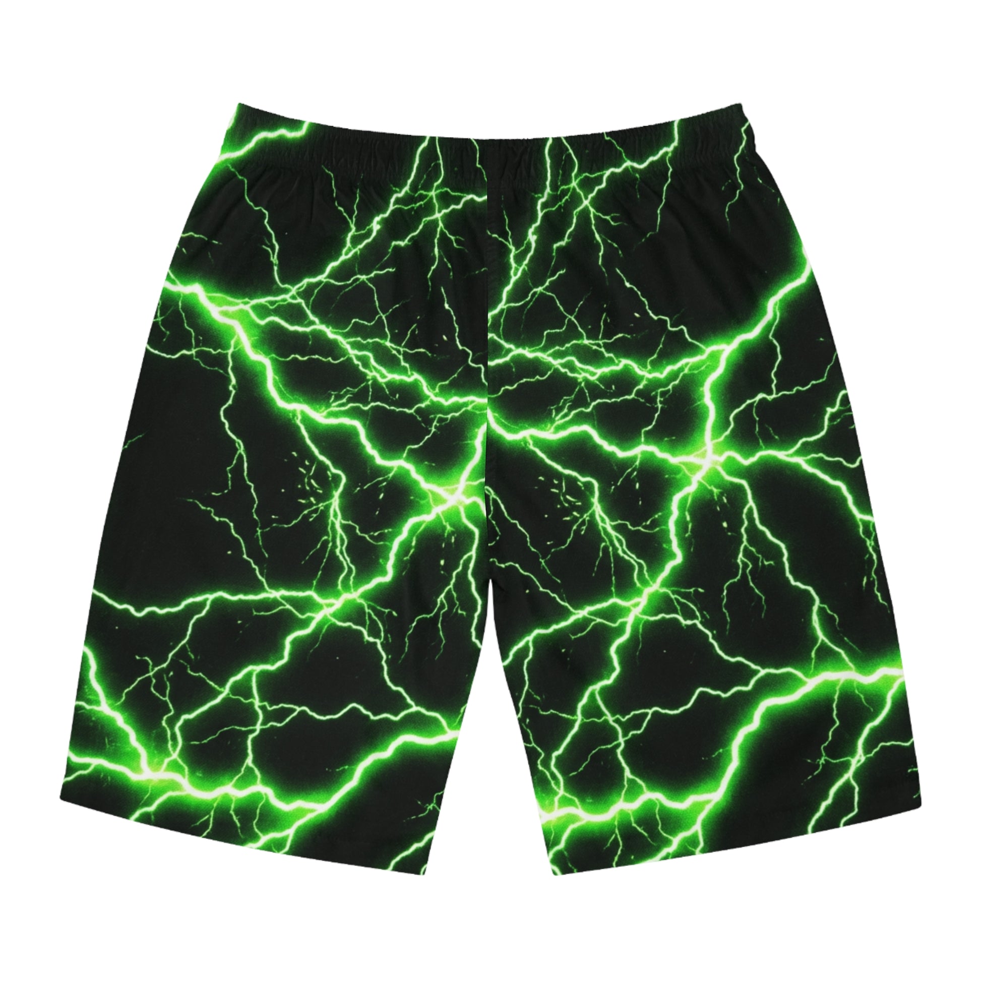 These lightweight board shorts bring high-voltage energy to warm days and loud nights. Electric-green lightning forks across a deep black field, catching eyes whether you’re poolside, skating the boardwalk, or chasing sunset surf. Cut for a relaxed, regular fit with an elastic waistband and drawstring, they move with you and dry fast when the water wins. Tuck your hands in the side-seam pockets, crank the drawstring, and let the bold print do the talking — these shorts are for people who live loud and move quick.